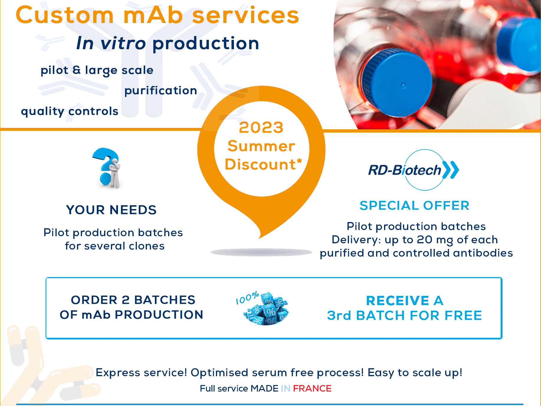 Commander 2 productions pilotes, RD-Biotech vous offre la production pilote d'un 3ème clone! Découvrez nos services
